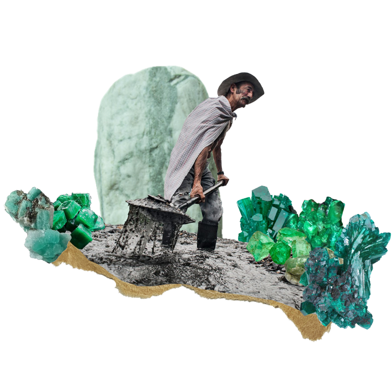 Las esmeraldas han sido valoradas a lo largo de la historia no solo por su belleza, sino también por su simbolismo y significado cultural. Desde la antigüedad, estas gemas verdes han adornado la vestimenta de reyes y nobles, convirtiéndolas en un símbolo de estatus y riqueza. Han hecho parte de rituales y hacen parte de mitos y leyendas. Colombia es el principal productor de esmeralda pues se estima que produce del 70% al 90% de esmeraldas de todo el mundo, le siguen Brasil, Zambia y Zimbaue. Su extracción se realiza en los cinturones esmeraldiferos oriental y occidental de la Cordillera Oriental de los Andes y comprende los distritos mineros de Chivor, Gachalá y Macanal en el cinturón oriental, y Muzo, Coscuez, Peñas Blancas, La Palma – Yacopí y La Pita en el cinturón occidental.