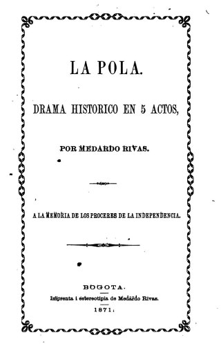 Se presenta La Pola. Drama histórico en cinco actos. A la memoria de los próceres de la Independencia de Medardo Rivas×
