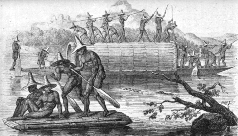 Esclavos en boga navegando el Magdalena Thomas C. Dawson 1904.